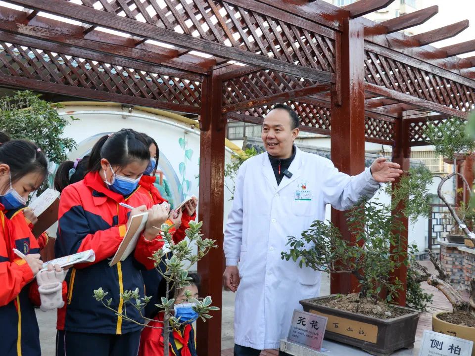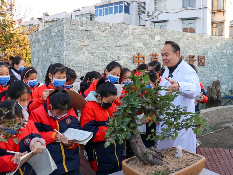 11月17日下午,求是小学一行师生来到了hth登录官网中医外治法展示馆。在药剂科王慧主任的带领下,同学们首先参观了“百草园”。这里汇聚了众多珍贵的中药材,不仅有金银花、何首乌、菊花等常见药材,还有许多珍稀、濒危的药材。在园内,同学们近距离观察各种药材的生长状况,了解它们的生长习性和药用价值。王慧主任耐心细致地解答同学们的问题,并告诉大家,百草园不仅是一个迷你植物园,更是一个中医药知识宝库,一草一木皆是博大精深的中医药文化缩影。在欣赏美景的同时,同学们更增长了中医药相关的知识。