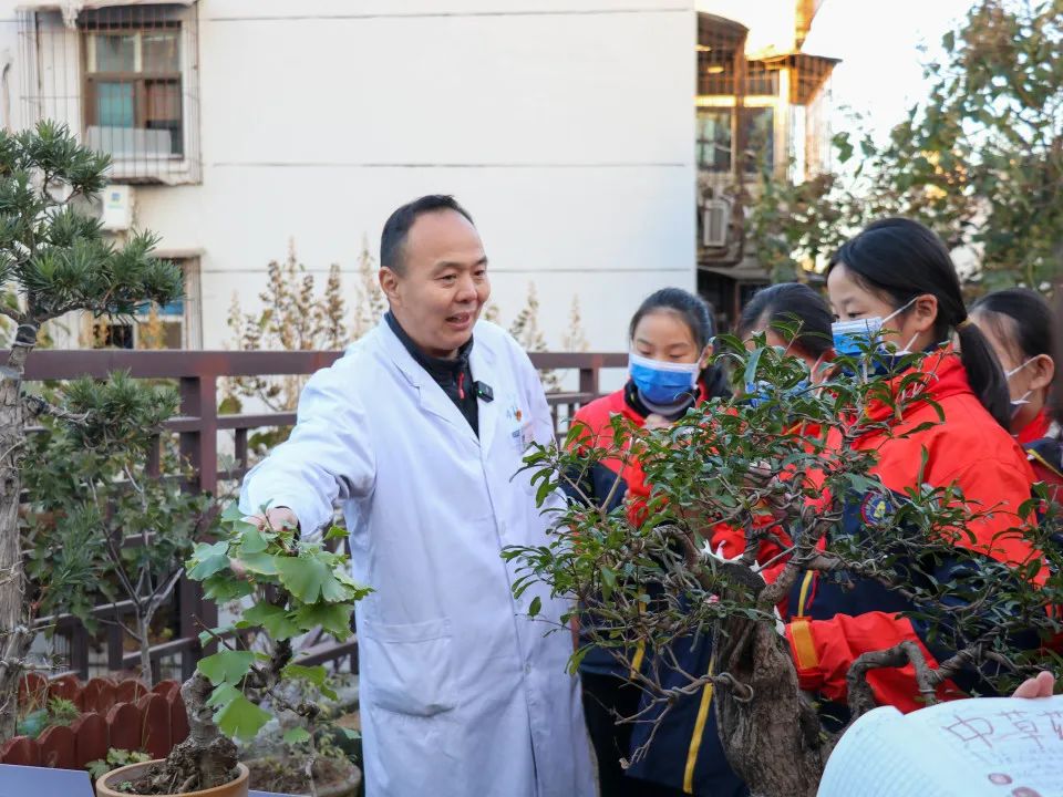在中药材盆景展品区,同学们看到了各种中药材盆景,包括侧柏、枸杞、黄芪等。药学部李江主任介绍道,这些盆景不仅具有观赏价值,还可以让大家近距离观察中药材的生长状态,加深对中药材的认识。