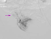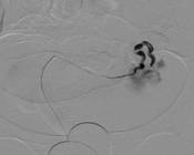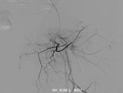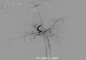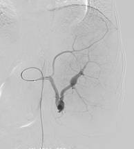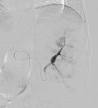各种原因所致的肝硬化出现门静脉高压,随病情进展,后者致脾脏增大,功能“亢进”,大量血细胞被其“杀灭”,引起白细胞、血小板甚至红细胞下降,即出现“脾亢”。脾亢的传统治疗方法是外科开腹后行脾脏切除术,虽然彻底的治疗了脾亢,但也去除了脾脏“处理衰老血细胞的本职工作”并降低了免疫功能。介入治疗是通过股动脉穿刺技术,引入导管至脾动脉,以栓塞剂堵塞部分脾动脉,达到缓解脾亢的目的。我科通过技术改进,采用术前CT确认脾脏亢进的主要部位,以微导管超选择进入其中后予以选择性栓塞,并于脾脏不同部位的分支血管采用不同程度的分级栓塞方法,有效的栓塞了脾实质内主要的亢进区,保留脾脏的免疫功能区,在解决了脾功能亢进的同时充分保留了其免疫功能,术后反应轻微,取得了满意的治疗效果。