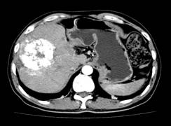 介入化疗栓塞术(TACE)是原发性肝癌的主要治疗方法,80%以上的患者首选介入治疗。我科在原发性肝癌的诊疗中更注重“精准”的要求:在诊断上,独立阅读影像资料,严格按国家原发性肝癌的诊疗标准执行,对不典型病例施行穿刺活检或动脉造影以明确诊断,目前,已为近20例拟诊为“原发性肝癌”的患者否定了诊断。在治疗上,术中以细导管超选择到肿瘤供血分支动脉后再行栓塞术,瘤体栓塞更彻底,周围正常肝组织损伤少,患者术后副反应轻微,3~5天即可消失;栓塞肿瘤使用液体栓塞剂,可以到达瘤体“深部”,在对肿瘤杀灭作用更强的同时,瘤体侧支血管形成的可能降低,栓塞后肿瘤稳定时间更长;在液体栓塞剂中加入无水酒精,加强对瘤体内血管网的破坏,进一步提高对肿瘤的杀灭作用。近年来,在医院“中医肿瘤多学科联合诊疗”机制下,对经介入栓塞后瘤体稳定的肝癌患者实施瘤体切除术,辅以中医药的应用,在治疗肿瘤的同时提高患者综合体质,明显提升肿瘤患者的生活质量。
