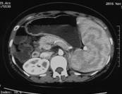 赵×,女,31岁,病毒性肝炎肝硬化伴脾亢。术前CT增强(图1a~图1c)见脾脏显著增大,外周血常规示:白细胞1.24×109/L;血小板40×109/L;红细胞2.15×1012/L。行“超选择分级栓塞脾动脉”介入手术治疗(图2a~图2b),术后3月复查外周血常规示:白细胞3.65×109/L;血小板130×109/L;红细胞2.59×1012/L。
