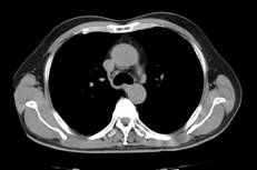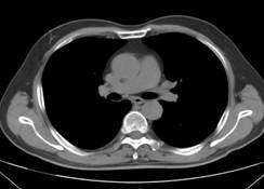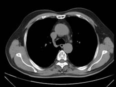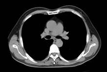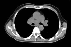 杨××,男,63岁,CT示右肺门占位(图1a~b)经穿刺活检证实右肺门部腺癌、纵膈淋巴结转移,基因检测提示“吉西他滨、5-Fu、铂类”化疗药物敏感;经三次介入治疗后CT(2012年12月19日)复查,瘤体明显缩小,纵膈肿大淋巴结消失(图2a~b);后无特殊治疗,4年后复查(2017年1月8日),病情稳定,瘤体不明显(图3a~b)。